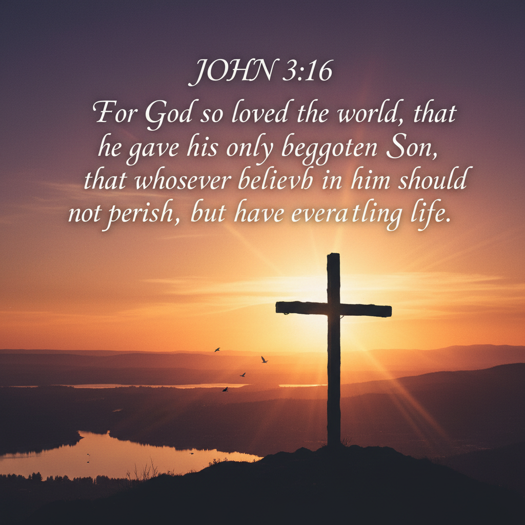 "For God so loved the world that he gave his one and only Son, that whoever believes in him shall not perish but have eternal life."